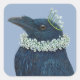 common raven wearing an Elizabethan collar and crown made of baby's breath