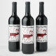 Elk design, snowflakes, red buffalo plaid pattern wine label