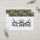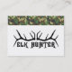Top border in a green camouflage. Antlers and "Elk Hunter" below. Back has customisable text.