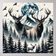 Surreal artwork featuring elk and a forestscape under a mystic moon with mountain scenery. Perfect for nature, wildlife, and fantasy enthusiasts, showcasing the wonder of the wilderness.