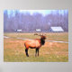 This poster features an image of an elk - with snow flurries falling - near the Ocunaluftee Visitors Centre for the Great Smoky Mountains National Park near Cherokee, North Carolina. Once abundant in the Appalachian mountains, the elk population dwindled for many years but they were reintroduced to the park several years ago. This image is based on an original photograph, and it's been given a painterly watercolor look with a digital program.