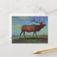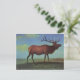 This painting depicts a male elk or buck standing in a flat field under a darkening blue sky. The animal has beautifully long antlers. This vintage painting makes a lovely graphic on any product.