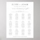 This seating chart poster features a modern minimalist design and 12 tables plus a Bridal table layout. The script text heading is an image that cannot be edited. The heading image can be resized to fit any poster size. All of the other text is fully editable. For more advanced customisation of this design, simply select the "Customise It" button above.