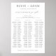 This seating chart poster features a modern minimalist design and 3 long banquet tables and a bridal table layout. The script text heading is an image that cannot be edited. The heading image can be resized to fit any poster size. All of the other text is fully editable. For more advanced customization of this design, simply select the "Customize It" button above.