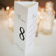This menu serves a dual purpose, serving as both a table number and a menu display. Its versatile design allows you to easily highlight the table number while also providing ample space for both the dinner and drink menus. Once printed fold the page into three sections and secure the triangle shape with either a line of glue or double-sided tape along the glue tab. The artwork includes fold lines that you can delete before purchasing.