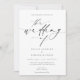 The Ellesmere wedding invitation features a modern minimalist design. The script heading is an image that cannot be edited. All of the other text is fully editable. For more advanced customisation of this design, simply select the "Customise It" button above.