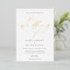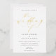 The Ellesmere wedding invitation features a modern minimalist design with a real gold foil on a white background for a clean and simple look. The script heading is an image that cannot be edited. All of the other text is fully editable. For more advanced customisation of this design, simply select the "Customise It" button above.