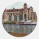 Vintage postcard image of Ellis Island in 1907 reprinted on this sticker.