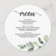 Modern Rustic Eucalyptus Greenery, String Lights, Round Plate shapes, Wedding elopement Dinner Menu. A perfect bar menu for your big day. You can change the script font colours and change the menu contents and fonts to meet your needs.