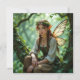 A mystical ethereal blank card featuring an elven fairy in vintage dress sitting on a tree branch.