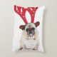 Embarrassed looking Pug wearing Reindeer Antlers Decorative Cushion