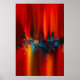 A city ignites in silence. Ember Skyline captures the moment between dusk and detonation—where vertical streaks of crimson and molten orange rise like flames against a backdrop of deepening blue. The lower half shimmers with scattered reflections: turquoise, cobalt, and flecks of light that suggest distant windows, neon pulses, or memories dissolving into night.