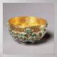 Russian School's Embossed bowl set with cabouchon gems and polychrome decoration, 1653 (gold with precious stones & pearls) located at the Kremlin Museums, Moscow, Russia. The Embossed bowl set with cabouchon gems and polychrome decoration, 1653 (gold with precious stones & pearls) was created around 1653 AD.