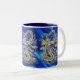 Embossed Gold Dragon on Blue Satin Print Two-Tone Coffee Mug