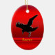 Embossed-look black Raven on red chrome-effect Ceramic Tree Decoration