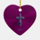 Embossed-look Gothic Cross in Purple with Monogram Ceramic Ornament