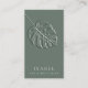 Minimalist professional Embossed monstera leaf monogram business card design.