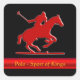Embossed Polo Pony and Rider, red chrome-look Square Sticker