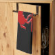 Embossed Polo Pony and Rider, red chrome-look Tea Towel