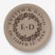Vintage embossed rose wreath on rustic kraft paper fall wedding paper plate. The focus of this rustic wedding design is a lovely rose wreath frame with your initials in brown in an embossed relief style.