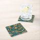 Embossed teal gold faux leather square paper coaster