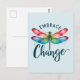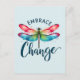 Colourful dragonfly with "Embrace Change" phrase postcard. Inspiring gift for graduates, dreamers, and anyone starting a new chapter in life.