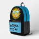 Everyone with braces on their teeth knows how to emBRACE every day with this fun backpack. It features a black background with a happy sunshine wearing cool sunglasses and proudly showing off his orthodontic braces. Bright blue accents and personalised with a name or initials. Great gift for kids or adults.