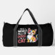 This witty graphic features a charming cartoon cat with distinctive colour-blocked fur in blue, orange, and white, sitting confidently with a happy, wide-eyed expression. The bold white text delivers a humourous and empowering message: "IN A WORLD FULL OF DOGS BE A CAT." Small sparkle accents around the text add a touch of whimsy. The design is set against a solid black background. Digital download for personal use only.