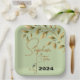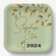 Capture the elegance of nature with our stunning wedding paper plate featuring a delicate branch adorned with leaves on a serene olive-coloured background. Perfect for a rustic or botanical-themed celebration.