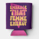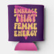 Stay refreshed and empowered with the **"Embrace That Femme Energy"** beverage cooler! Featuring bold typography, this design celebrates the strength and beauty of feminine energy. Perfect for keeping your drinks cool while making a statement, it's the ideal accessory for anyone who radiates confidence and pride in their femininity.