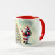 Add a touch of festive elegance to your morning routine with this beautifully designed holiday mug. Featuring a whimsical winter-themed Santa Claus illustration, this mug is perfect for cozying up with your favorite seasonal beverages. A wonderful gift for loved ones or a stylish addition to your own collection.