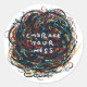 A chaotic swirl of colourful scribbles forms a circular pattern. The centre features the words "Embrace Your Mess" in clear blue.