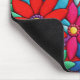 Embroidery abstract daisy flower pattern in red, yellow, blue, and green colours.