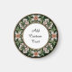 A lush circular embroidery design featuring pink and white flowers set against a deep green background. Perfect for patches, decor, or craft projects with vintage botanical charm.