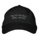 Embroidered black hat "Reverence the Word" which means reverence for the truth, an awe-field veneration of the WORD by the taking time to study with greatest care of God's word and not distort it.