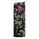 Embroidered Purple Irises Black Background. Thermal Tumbler