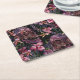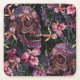 Embroidered Skull: Gothic Orchid Pattern Square Paper Coaster