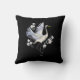 Embroidered White and Grey Crane Bird Floral Black Cushion