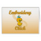This vibrant Embroidery design features a charming yellow chick with a sultry expression. The Embroidery Chick is featured on dozens of items in numerous colours, including buttons, keychains, ornaments, phone cases, tote bags, t-shirts, and more. Check out our growing line of chick designs. With over 400 categories including occupations, countries, hobbies, instruments, games, and sports represented, you’re sure to find the chick illustration that is perfect for you.
