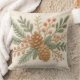 Embroidery Christmas Floral Sprig Pinecone Cream Cushion