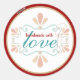 Very cute embroidery hoop with decorative design in stitches with needle and thread on this 'handmade with love' gift tag sticker, funny t-shirt, craft show name badge and more for stitching crafts or seamstress.