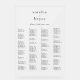 This sign can be used to organise your guests alphabetically or by table number by changing the names of the headings. This wedding sign includes enough room for up to about 120 guests. Make room for more (or less) guests by clicking the "customise" button and decrease or increase the size of the font. In addition to the placement of each guest, personalise this sign with the names of the couple.