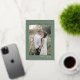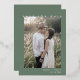 The dark sage green design features rustic and simple typography with a woodland mountain feel. Save the date is done in a luxurious pressed silver foil.