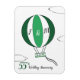 The design shows a green hot air balloon & includes space for the initials and anniversary date of the happy couple.