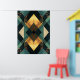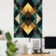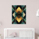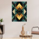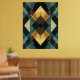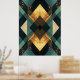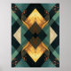 Inspired by faceted gemstones and elegant ancient forms, "Emerald Amber Prism" crystallises light and balance. The artist crafted perfect mirrored symmetry with bold diamonds as anchors, complemented by flowing crescent-like shapes. A palette of deep sapphire, vibrant emerald, and radiant golden amber creates a luxurious glow, contrasted by dark and light tones. Masterful layering, transparent overlays, and reflective gradients imbue the piece with captivating depth, making it feel like a luminous, polished gem. It's a visual journey fusing timeless elegance with a glimpse into a structured, yet fluid future.