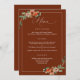 Whether your wedding is held indoors or embraces the outdoor beauty of fall or winter, our Emerald Greenery and Rust Floral Romantic Wedding Menu complements the ambiance perfectly. It is more than just a list of dishes – it's a piece of art that elevates your dining experience and encapsulates the essence of a seasonally-inspired celebration.