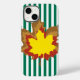 Emerald Autumnal Stripes with Leaves Case-Mate iPhone Case
