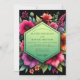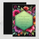 A dramatic design bursts with vibrant jewel-toned blossoms against a deep backdrop. Lush anemones and fuchsia blooms create a rich, moody atmosphere, perfect for an elegant, sophisticated affair. The colour palette features deep emerald greens, rich fuchsias, and pops of warm orange.