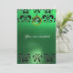 EMERALD DAMASK GEM STONE MONOGRAM green black Invitation