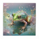 "Emerald Essence: Green Frog in Fractal Art" Ceramic Tile